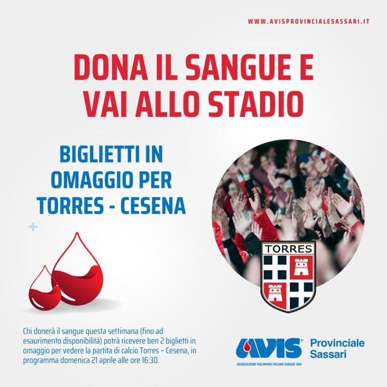 Bella iniziativa quella portata avanti dall’Avis provinciale di Sassari in collaborazione con la Torres. Coloro i quali infatti doneranno il sangue durante la settimana in...