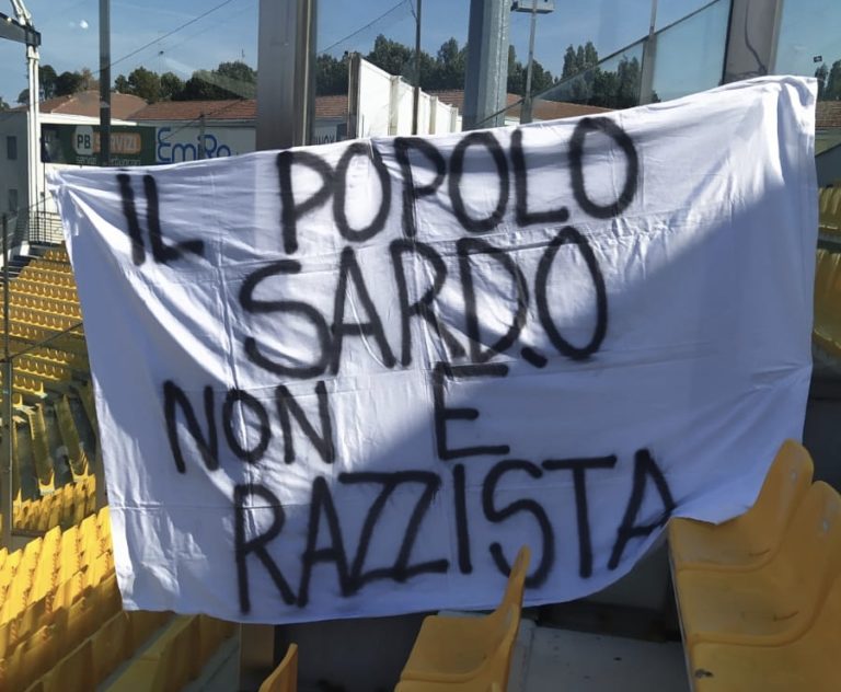 Sugli spalti dello stadio Tardini è comparso uno striscione, su un lenzuolo bianco, con la scritta “Il popolo sardo non è razzista”. “Il popolo sardo...