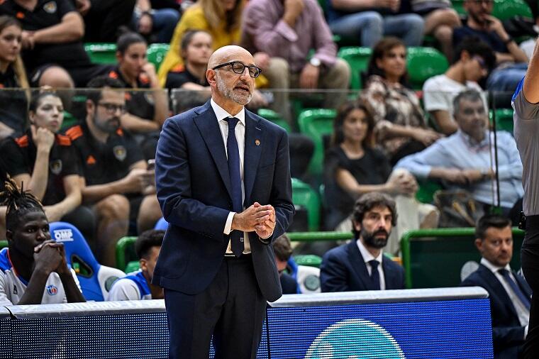 Le parole del coach biancoblù in sala stampa dopo il primo successo stagionale contro Treviso al PalaSerradimigni, grazie a un ottimo Tyree autore di 18...