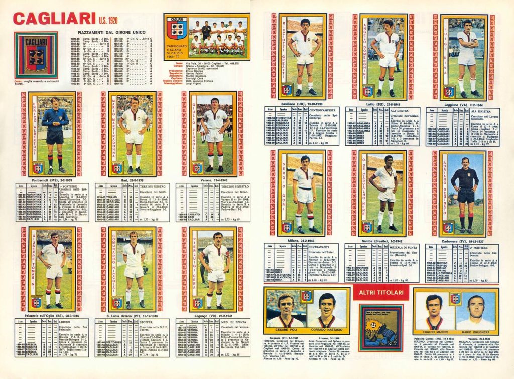 E, in quegli anni di domande continue agli adulti (specie allo stadio), le storie di un Cagliari capace di far impallidire Milan, Inter e Juventus diventavano sempre più intriganti, specie per la curiosità di un bimbo di otto anni. Così, alla stessa stregua di proprietà invariantiva e il Sacro romano impero, si studiava anche la storia del Cagliari. “Nonno, ma è vero che il Cagliari ha vinto lo scudetto? Zio, ma chi era Gigi Riva?”. E via con i racconti vissuti, partendo da una vecchia videocassetta “Logos”, dal titolo Gigi Riva e il suo Cagliari. Tanti goal, un mito e uno scudetto, con immagini dalla qualità assolutamente vintage – eufemismo – e con la voce narrante di Nando Martellini. E poi i ritagli di giornale conservati gelosamente in un diario dell’epoca, insieme all’album di figurine dei Calciatori Panini. Datato 1969-70, ovvio. Con le figurine che si attaccavano con la cellina, perché non erano ancora “autoadesive”. Con il formato che oggi, in tempi di storie Instagram, si chiamerebbe 9:16, con nome e cognome del calciatore scritti in verticale.