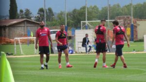 Partitella finale – A concludere l’allenamento una partitella finale con tanto di sfida tra blu e gialli. Entrambi schierati con un 3-5-2, anche se la difesa anche in fase di costruzione dal basso si portava a 5 per poi allargare e fare salire i quinti sulle fasce. Curiosità : Joao Pedro usato da difensore centrale, probabilmente data la sua squalifica per Verona e per lasciare spazio in avanti ai possibili ballottaggi. Da segnalare nella partitella una botta al piede rimediata da Pellegrini su contrasto di gioco con Mattiello. Non sembrerebbe niente di grave con il terzino in prestito dalla Juventus che lamentava dolore nell’appoggiare il piede. Pellegrini che non ha concluso in maniera precauzionale la partitella.