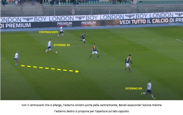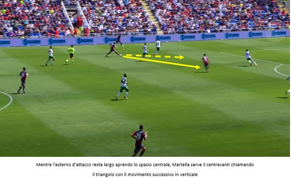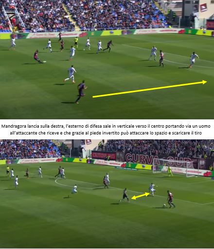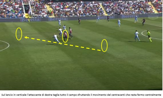 Negli episodi mostrati si può notare come a volte si sfrutti l’esterno quando l’attaccante si accentra e altre l’interno quando lo stesso attaccante resta più largo: nel primo caso viene sfruttato un altro elemento del gioco di Zenga, ovvero l’utilizzo degli attaccanti d’appoggio con il “piede invertito”, un destro a sinistra e un mancino a destra.