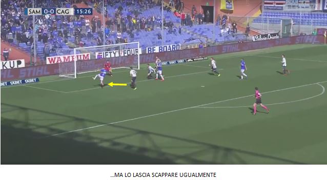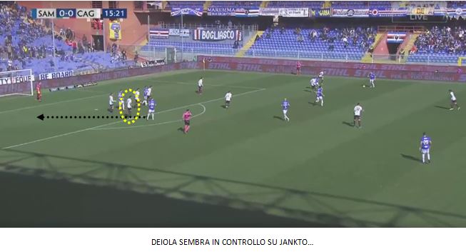 Purtroppo però Deiola ha mostrato ancora una volta gli stessi difetti che portarono al gol di Kucka una settimana prima, quando con il centrocampo basso a protezione della difesa si dimenticò completamente dell’avversario diretto lasciando che si inserisse in verticale senza essere disturbato. Se in quell’occasione arrivò la rete, contro la Sampdoria l’errore di Jankto davanti a Cragno ha nascosto una mancanza che altrimenti sarebbe stata molto più evidente.