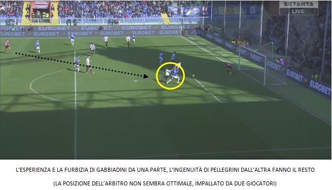 Il gol è arrivato alla fine solo su calcio di rigore: lasciando da parte le discusssioni sulla decisione arbitrale in merito (segnalando però che l’invito alla revisione al VAR è fuori luogo, non essendo parte del protocollo in casi di trattenute valutate in diretta dall’arbitro), dal punto di vista prettamente tattico la disattenzione di un Pellegrini fino a quel momento perfetto nelle diagonoli è apparsa chiara.