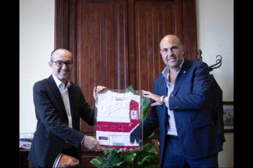 L’appuntamento ufficiale da programma prevedeva la consegna al sindaco Truzzu da parte di Giulini della maglia del Cagliari del centenario. Un nuovo incontro tra società e istituzioni fissato negli appuntamenti rossoblù relativi alla celebrazione dei 100 anni dalla fondazione del club. Il secondo dopo l’annullo filatelico del francobollo del centenario pensato da Poste Italiane e celebrato in via Roma lo scorso 30 maggio proprio da Giulini e Truzzu.