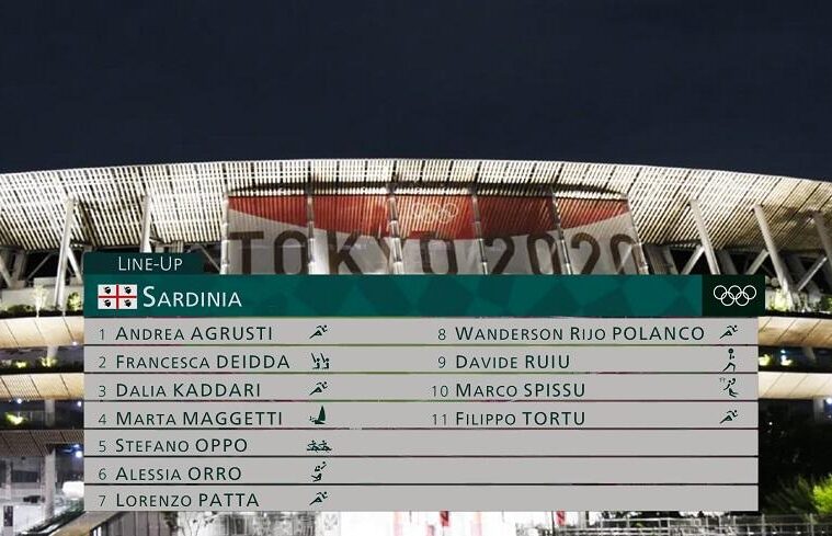 “Ed eccoli, con le loro divise biancocrociate e adornate delle quattro teste di moro, fanno ingresso nello Stadio Olimpico gli 11 atleti della spedizione sarda a Tokyo 2020. La Sardegna, o meglio come abbiamo sentito pronunciare dallo speaker “Sarudēnya” (サルデーニャ) sfila dopo Zambia e San Marino e prima di Sierra Leone e Gibuti, in un curioso ordine alfabetico, che alfabetico non è in quanto nella lingua locale si utilizza il sistema Gojūon basato sull’ordine degli ideogrammi”.
