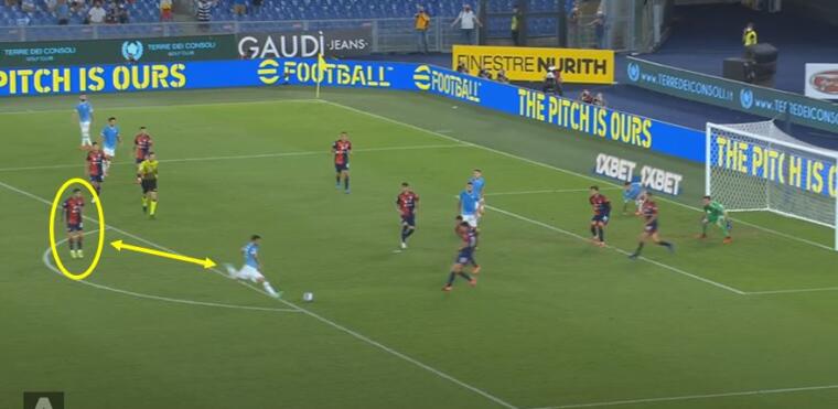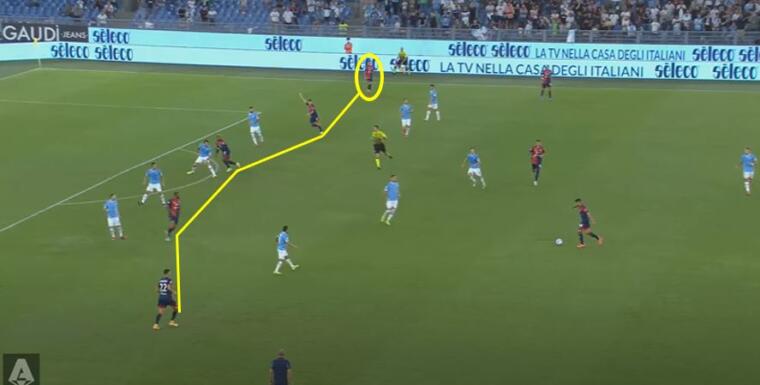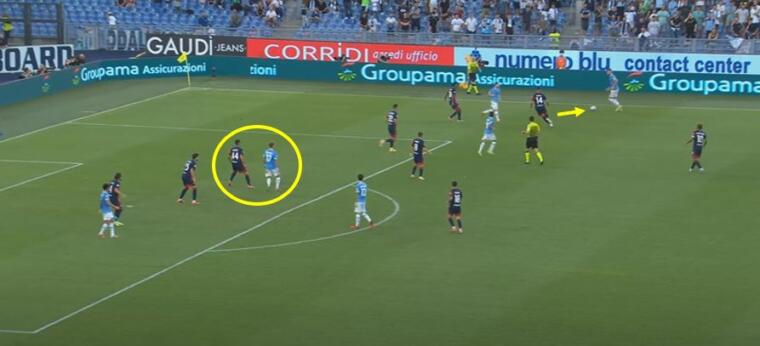 Il pareggio di Cataldi negli ultimi minuti è frutto di una catena di mezzi errori che portano al tiro del giocatore biancoceleste. Si parte dalla facilità con cui Felipe Anderson mette in mezzo il pallone, si passa all’incertezza nella respinta centrale di Cragno, si arriva alla poca reattività di Carboni e Bellanova. C’è però un particolare che risulta decisivo ed è la mancata lettura dello sviluppo dell’azione da parte di Pereiro. Manca la cosiddetta marcatura preventiva, il prevenire un possibile inserimento di Cataldi restando attaccato all’avversario. Quando Felipe Anderson calcia in mezzo, Pereiro è qualche metro più vicino alla propria area di quanto lo sia l’avversario che poi segnerà. Dopo la respinta di Cragno c’è ancora il tempo di disturbare Cataldi. Infine, al momento del tiro che finirà sul sette, la distanza tra il Tonga e l’avversario è davvero ampia. Una leggerezza mentale che nasce anche da caratteristiche che mancano al giocatore e che il nuovo tecnico rossoblù dovrà cercare di tirar fuori nelle prossime settimane.