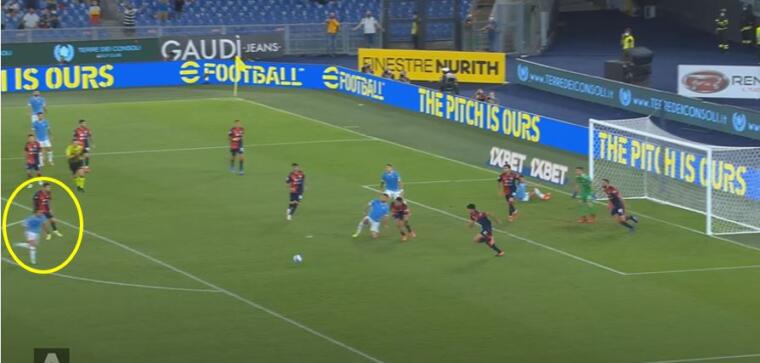Restando sulla fase offensiva organizzata da Mazzarri, si può notare come le opzioni di giocata siano state molteplici grazie al supporto di più uomini dalla trequarti in avanti. La posizione di Deiola come mediano, il disequilibrio tra un Caceres più difensivo e un Lykogiannis più di spinta, il lavoro di Nández – quasi terza punta all’occorrenza – e della coppia Keita-Joao Pedro a tenere impegnata la retroguardia avversaria. Tutti aspetti fondamentali che hanno determinato il secondo tempo a tratti dominante del Cagliari.