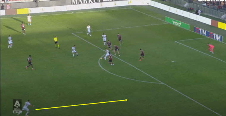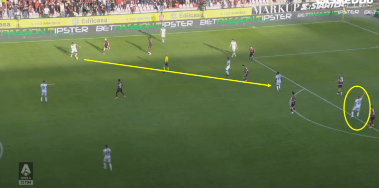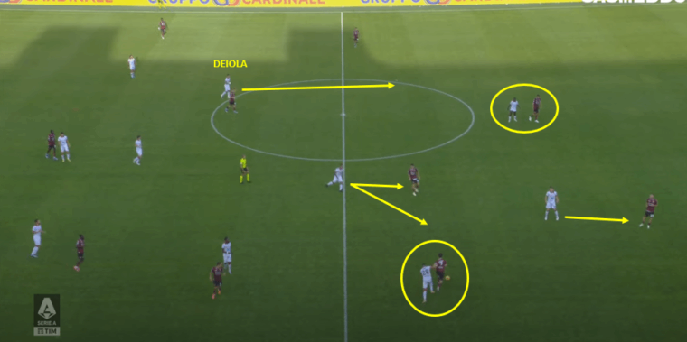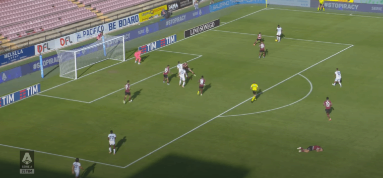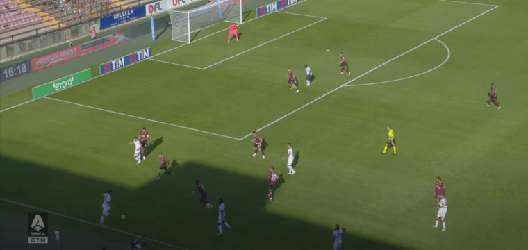 Non solo, ma nel momento in cuiย l’angolanoย ha gestito il pallone nel cuore dell’area della Salernitana, ecco che sul lato opposto rispetto a inizio azione arriva anche Nรกndez, colpevolmente ignorato dal numero 77 che avrebbe potuto servire un pallone orizzontale per la facile conclusione di primaย dell’uruguaiano.ย A prescindere dall’evoluzione della giocata, resta valido l’aspetto positivo di una squadra che ha portato ben sette giocatori all’interno della trequarti granata.