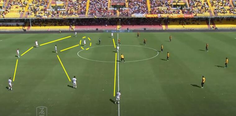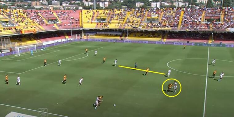 La classica mezzaluna con la quale Luvumbo rientra dalla posizione irregolare per poi attaccare lo spazio dietro la difesa e rendendo inutile il tentativo di metterlo in fuorigioco da parte di Glik e compagni. Una giocata che dimostra l’intelligenza tattica dell’angolano, capace di gestire al meglio la propria posizione rispetto al pallone e agli avversari, dettando il tempo di gioco e favorendo la rete del raddoppio.