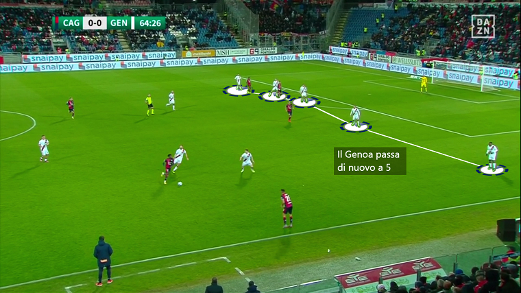 Il Genoa si è allora trovato costretto a ripassare a 5 togliendo proprio quel Jagiello che tanti grattacapi aveva creato nei primi 45 minuti e inserendo un esterno di gamba come Haps.