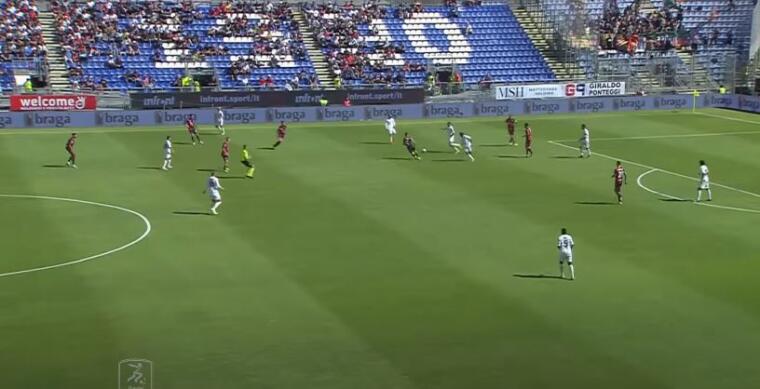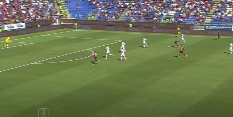 Dopo la parata di Radunovic, premessa al tap-in di Cheryshev, si può notare come da un generale uno contro uno il Venezia sia arrivato a una netta superiorità numerica. Tanti, troppi rossoblù si fermano, spettatori quasi disinteressati che non riescono a trovare la spinta per salvare il salvabile.
