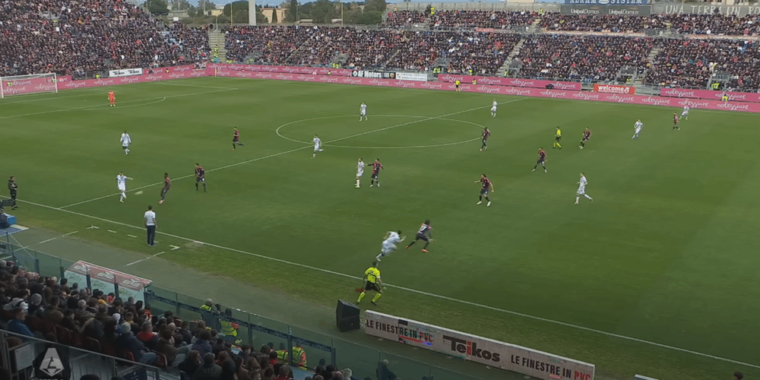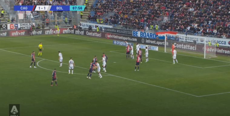 Come il Bologna è riuscito a colpire il Cagliari grazie a un pallone verticale alle spalle del difensore, così il Cagliari ha colpito il Bologna con lo stesso mezzo. Non lateralmente, ma centralmente e non con un’azione nata all’altezza della metà campo, ma con un lancio dalle retrovie. Una scelta già vista nella gara di andata sul gol segnato da Luvumbo su assist di Wieteska, mentre nella sfida di ritorno è stato Dossena a trovare Petagna, non esattamente un giocatore da profondità .