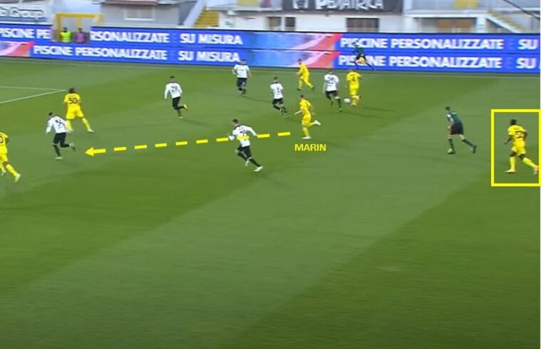 Quando Bastoni si appresta a effettuare il cross è chiara la situazione di difficoltà di una difesa rimasta sorpresa dalla palla persa da Nández. Giocatori statici, ma soprattutto il duo GodÃn – Klavan che deve fronteggiare ben quattro avversari. Il difensore estone si trova nella medesima situazione nella quale si è trovato Rugani in occasione del primo svantaggio. Tra seguire Gyasi o fare altrettanto con Maggiore, Klavan sceglie di non scegliere e anzi, quando è chiaro che la sfera finirà sul centrocampista più che sull’attaccante il centrale rossoblù non mette la giusta cattiveria nell’attaccare l’avversario su un pallone abbastanza leggibile. Il resto è un misto di fortuna – la conclusione di Maggiore è indubbiamente beffarda – e di un Cragno che avrebbe potuto probabilmente fare di più pensando, forse, che la sfera fosse destinata a finire sul fondo.