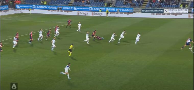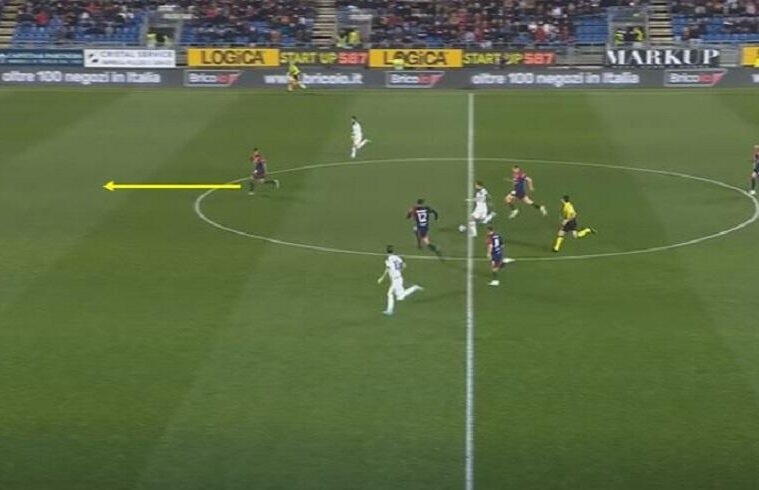 Due aspetti che si uniscono anche nell’occasione di Immobile sventata da Cragno. In primis Deiola sceglie di controllare un pallone al limite dell’area quando la scelta piรน logica sarebbe stata calciare verso Strakosha a costo di spedire la palla in tribuna. Azione che nasce da una rimessa laterale in zona offensiva, una sorta di calcio d’angolo come nel caso del vantaggio laziale. Una volta persa palla, il Cagliari ha subito la folata degli avversari con il solo Lovato a opporsi. In questo caso, perรฒ, il centrale fa ciรฒ che non ha fatto Dalbert nella rete del raddoppio laziale. Scappando all’indietro il centrale rossoblรน permette il recupero di alcuni compagni, favorendo la conclusione di Immobile non a botta sicura, ma con maggiori difficoltร .