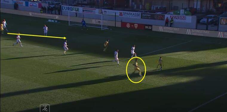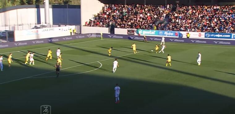 Il difensore scuola Roma, però, si lascia aggirare e superare dal movimento dell’attaccante di Bisoli, perdendo sia il contatto visivo con il pallone – e il tempo di un eventuale anche se difficile attacco della sfera – sia quello con l’avversario. Che avrà gioco facile nel battere un incolpevole Radunovic.