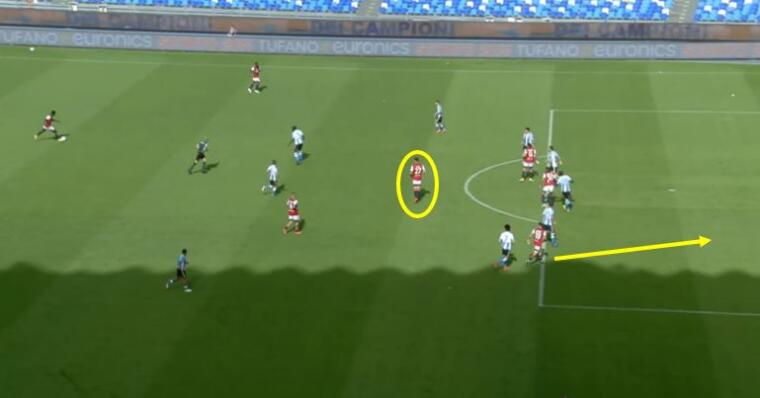 Il gol al 94′ ne è una logica conseguenza. Senza compiti difensivi estremi Nández ha mantenuto la lucidità per sorprendere Hysaj alle spalle sul lancio millimetrico di Duncan, sfruttando la sua corsa e i tempi di gioco nell’inserimento che sono le sue caratteristiche principali, fino a oggi limitate da una posizione non esattamente consona o a tutta fascia o addirittura a piede invertito sul lato opposto. Sul gol inoltre non va dimenticato il lavoro di Cerri, fino doppio centravanti pronto a venire fuori da trequartista atipico.