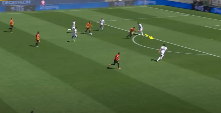 Schema con Nainggolan che sembra disinteressarsi di Marin alla battuta per poi cambiare direzione e andare all’uno-due con il compagno. Lykogiannis fuori area sembra anche lui non partecipare all’azione.