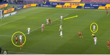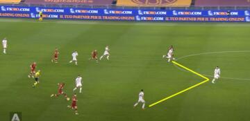 La cartina di tornasole che racconta di una squadra altissima è nel contropiede giallorosso che porta Felix a scontrarsi con Cragno. Il trio Altare-Goldaniga-Carboni è ben oltre la propria metà campo, con la volontà di mantenere la squadra corta e di recuperare palla il più avanti possibile. La Roma ha così provato a sfruttare i palloni lunghi a scavalcare la difesa, cercando di puntare sulla velocità del giovane Felix alle prese con un Altare più strutturato ma con un passo decisamente diverso. Resta però un atteggiamento propositivo e senza paura dei tre difensori, nota di merito per Mazzarri e i suoi.