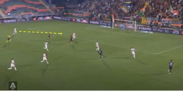 L’occasione che arriva con il tiro deviato di Bellanova ne è lo specchio. Quando Grassi ha la palla al limite dell’area e cerca un movimento o uno sbocco per servire un compagno dentro i sedici metri, ciò che trova sono giocatori fermi, senza nessuno che provi a dare un’opzione diversa dallo scarico nuovamente sulla sinistra.