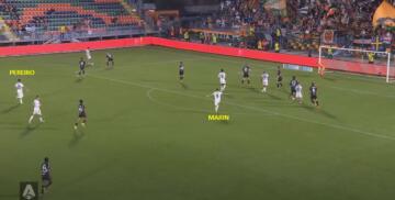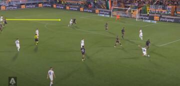 Bellanova, al netto degli errori sottoporta e difensivi, è assieme a Nández l’unico che davvero prova dei movimenti per liberarsi. L’esterno ha sulla testa la palla salvezza, ma Maenpaa si supera. Interessante il modo in cui arriva l’occasione, con il León che serve sul lato opposto il compagno in maniera perfetta e Bellanova che arriva dentro l’area con una corsa senza palla altrettanto efficace. Un lampo nel buio.
