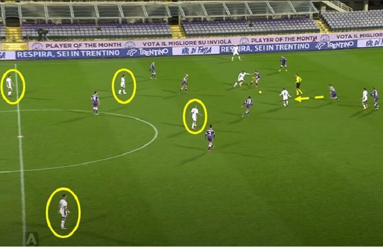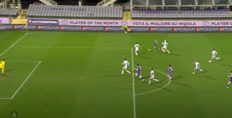 Pronti via e Pisacane esegue due passaggi orizzontali in serie che teoricamente sarebbero vietati a qualsiasi livello calcistico. Quando il pallone passa dall’esterno all’interno due aspetti sono fondamentali. Il primo è l’avere l’assoluta sicurezza di non correre alcun rischio, il passaggio deve essere deciso e senza il minimo dubbio che un avversario possa inserirsi. Il secondo è che i compagni proteggano il destinatario del pallone. Nel caso specifico Pisacane effettua un alleggerimento verso Cragno con poca convinzione, GodÃn dal canto suo non si frappone tra il portiere e Vlahovic, anzi, consegna il lasciapassare al centravanti viola.