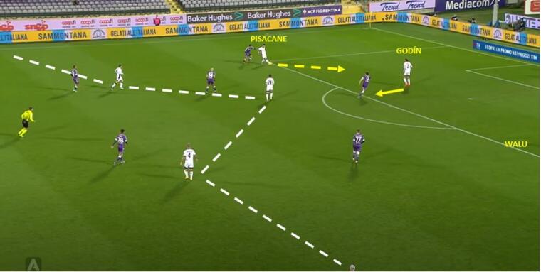 C’è un momento in cui sia Walukiewicz che Lykogiannis in rimonta possono mettere quella aggressività con cui Quarta ha tolto la palla a Marin. Un fallo, un’entrata anche da giallo, una scelta che non sia quella dell’attesa quasi impotente del destino scelto da Callejon. In mezzo, nel frattempo, il due contro due di GodÃn e Pisacane contro Vlahovic e Bonaventura sì preoccupa, ma non sembra così pericoloso da poter determinare quanto avviene poco dopo.