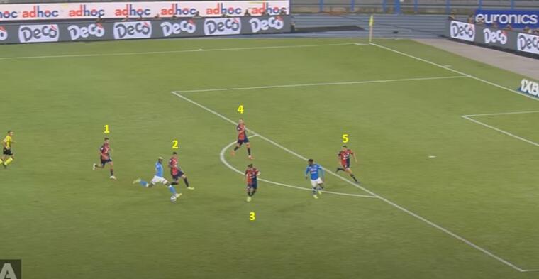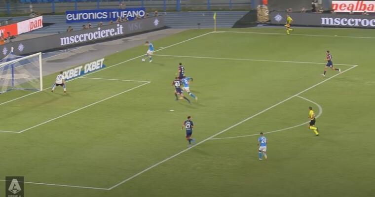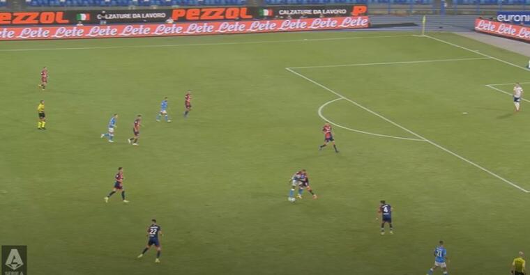 Osimhen prende palla a metà campo, liberandosi di GodÃn di forza e partendo palla al piede verso la porta. L’unico a seguirlo dei compagni è Anguissa, ma nonostante un cinque contro due il centravanti nigeriano riuscirà comunque a calciare verso la porta seminando il panico. Trentacinque metri palla al piede senza che nessuno provi ad affrontarlo per la paura di venire saltato. Un continuo rimbalzare verso la propria area che è, in sostanza, il segno delle difficoltà del Cagliari nella gestione della gara.
