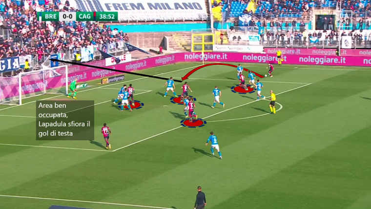 La nota più lieta dal punto di vista offensivo è probabilmente Zito Luvumbo, ancora una volta scheggia impazzita che con la sua tecnica in conduzione è capace di rompere gli equilibri avversari, collezionare gialli e conquistarsi rigori (o semi-rigori contro Venezia e Genoa). Tuttavia, i rossoblù hanno dato ancora una volta dimostrato di faticare parecchio nell’attaccare l’area: anche quando l’angolano riesce a superare i diretti avversari e ad andare sul fondo l’area è quasi sguarnita. Non è un caso che la più grossa occasione della partita (un bel colpo di testa di Lapadula) nasca da quella che è l’unica situazione in cui i rossoblù hanno attaccato l’area con tanti uomini.