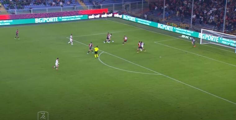 Situazione che si è ripetuta quando Gudmundsson, partendo da sinistra, ha puntato palla al piede verso l’area rossoblù. Tra Luvumbo che non ha speso un fallo quasi automatico e Deiola troppo lento nel reagire alla mancanza del compagno, il giocatore del Genoa ha avuto la possibilità di tagliare verso il centro per poi concludere sul palo alla sinistra di Radunovic.