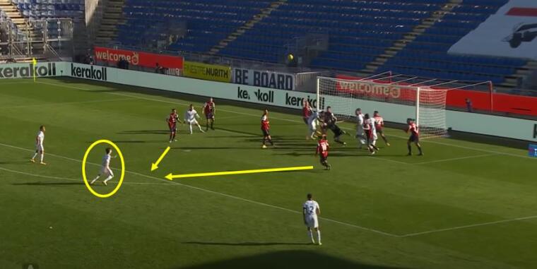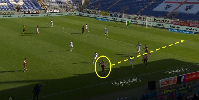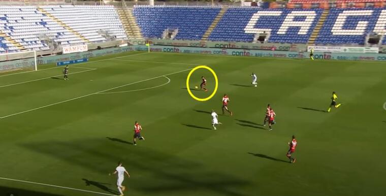 Anche nella gestione degli spazi tra lui e i compagni di difesa Carboni deve migliorare alcune letture. Sul cross a servire Sanchez, fermato poi con il piede da Cragno, il giovane centrale è troppo concentrato sul pallone perdendo così di vista il cileno, abile a trovare il buco tra i due difensori rossoblù.