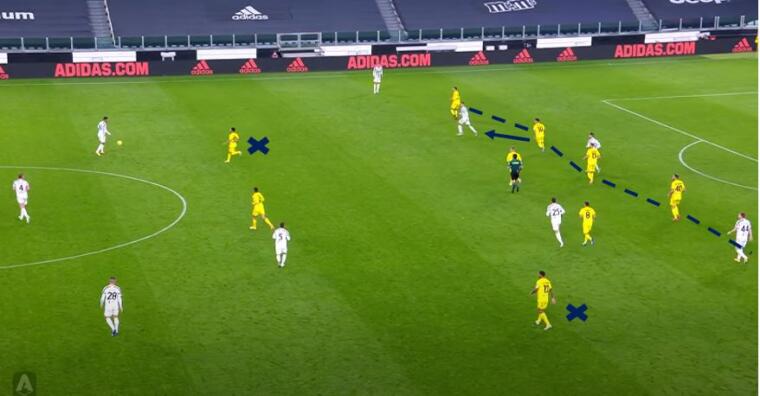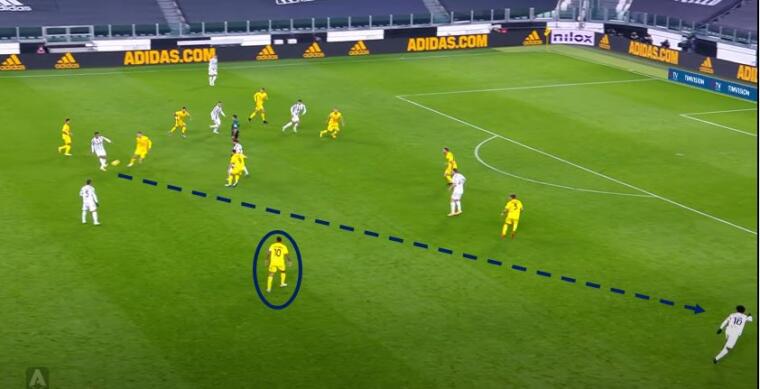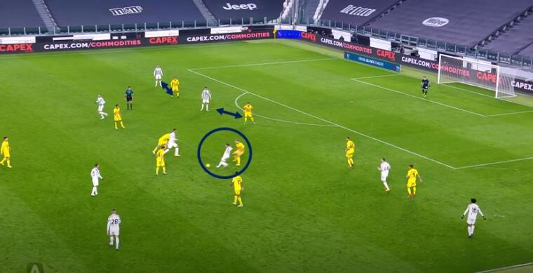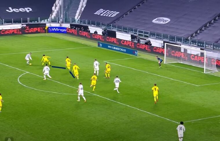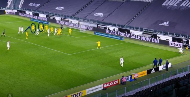 L’uscita di uno dei centrali sulla trequarti ĆØ ancora più chiara in occasione del vantaggio della Juventus. Klavan va ad accorciare su Bernardeschi e a quel punto di crea un due contro due tra Morata e Ronaldo contro Pisacane e Zappa. Il dubbio a posteriori ĆØ se sia stata la scelta corretta chiedere a uno dei tre difensori di andare a prendere l’uomo tra le linee piuttosto che domandare lo stesso compito a Rog o Marin, senza mettere in difficoltĆ tutta la linea arretrata.