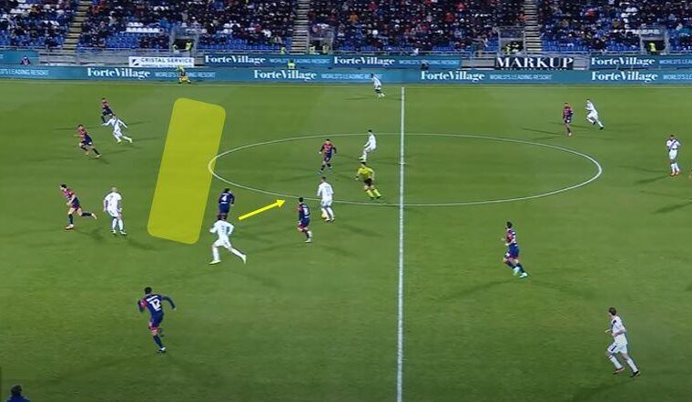 Con il passare dei minuti e con le distanze che si ampliavano, Marin e Nández hanno perso il controllo della mediana mentre la difesa, di riflesso, ha cominciato ad abbassarsi pericolosamente. Questo ha lasciato lo spazio al Torino per trovare sbocchi centrali, fino a pericolosi fraseggi stretti che partivano dal limite dell’area per portarsi spesso vicino alla porta di Cragno come in occasione dell’incursione di Baselli. In sostanza, l’aggiunta di un giocatore offensivo come Pereiro, più che dare maggiori chance di vittoria al Cagliari, ha portato più occasioni agli uomini di Juric. Come spesso accade, infatti, più elementi d’attacco non hanno come conseguenza maggiore pericolosità, mentre il mantenere l’equilibrio trovato avrebbe potuto, chissà, dare più possibilità ai rossoblù di incidere nell’ultimo quarto d’ora.