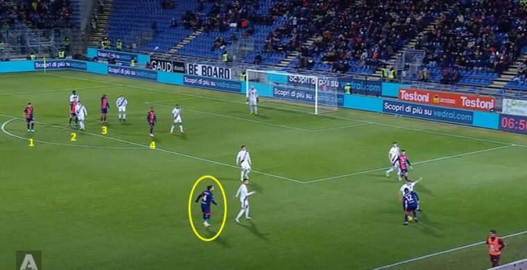 Un esempio è arrivato dalla rete spettacolare messa a segno da Joao Pedro. Il gesto tecnico è solo una parte dell’azione. Sono diversi infatti gli elementi chiave che hanno portato alla segnatura, dal supporto di Caceres – che così facendo ha spostato l’attenzione dal possibile raddoppio sull’esterno dei difensori granata – alla capacità di Bellanova di puntare l’uomo piuttosto che ripartire con un passaggio all’indietro e il conseguente giro palla. Infine la presenza nell’area del Torino di quattro giocatori che impegnano tutta la difesa di Juric.