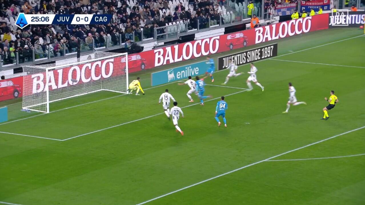 Dopo lo scarico leggibile di Kalulu su Thuram il Cagliari commette l’errore decisivo che porta al gol del pareggio. Protagonista negativo Zappa che, nonostante Adopo, Palestra e Deiola siano pronti a chiudere sul francese, decide di staccarsi da Yildiz e andare ad attaccare la zona del pallone nonostante sia in ritardo e la sua presenza in quel momento inutile. Obert, dal canto suo, decide allo stesso modo di staccarsi dalla zona dove gravita Yildiz, ma per un motivo più funzionale: Liteta, infatti, è solo contro McKennie e Conceicao e, peraltro, si scontra con l’americano lasciando di fatto via libera alla coppia bianconera. Obert, dunque, correttamente va ad aiutare il compagno, mentre Zappa è ormai nella terra di nessuno: né utile per fermare Thuram né in marcatura su Yildiz. Manca la percezione del pericolo reale, ossia la copertura dell’uomo più pericoloso (non di certo Kalulu ai 25 metri) e della zona centrale del limite dell’area. A quel punto, con il rimpallo che favorisce il dieci della Juventus, diventa semplice per un calciatore con quelle qualità concludere in rete alle spalle di Caprile.