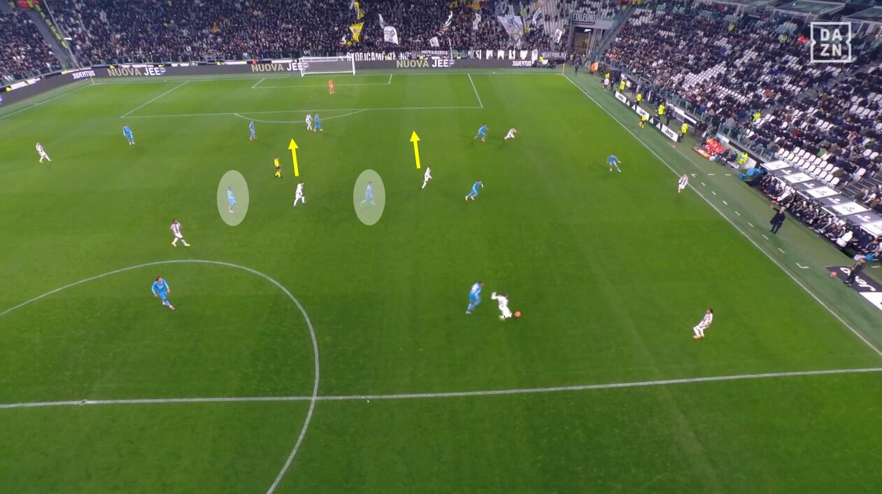 Se il gol del pareggio è arrivato a causa di una scelta individuale errata che ha inciso sul collettivo, quello del vantaggio per il definitivo 2-1 per la Juventus nasce e si sviluppa per una disposizione collettiva rivedibile e che aveva già prodotto problemi in precedenza.