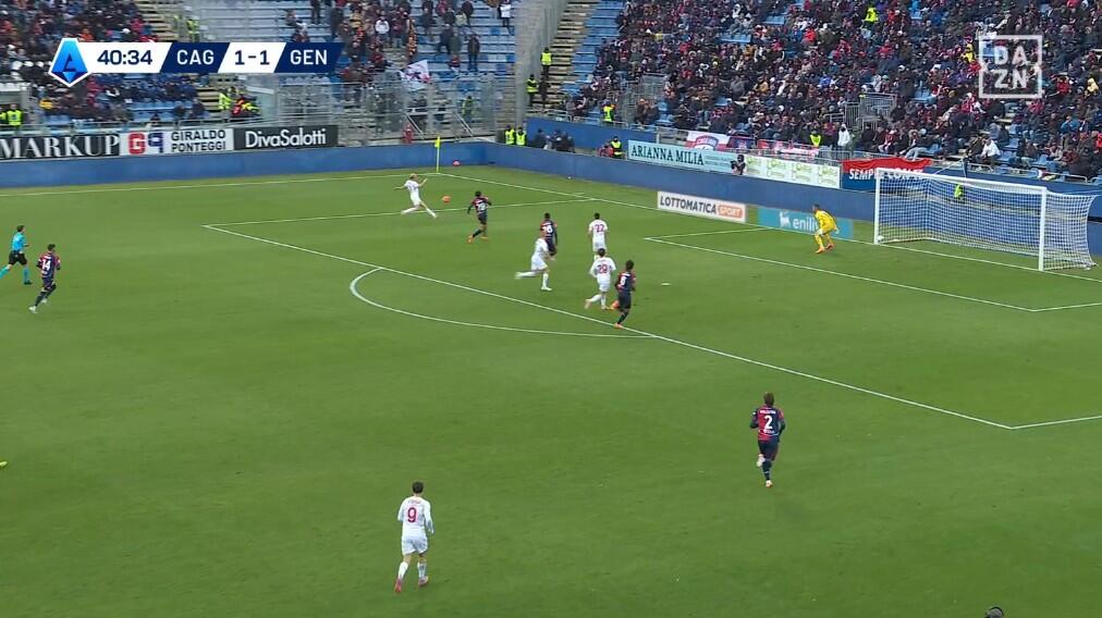 La rete del 3-2 arriva subito dopo il cambio tattico. La presenza dei due esterni larghi costringeva il Genoa ad aprirsi nei mezzi spazi, occasione per Zappa di puntare in avanti e attaccare proprio quella zona in conduzione. Sono ben otto i rossoblù in proiezione offensiva, con Adopo che attacca la verticale, Palestra che dà un’opzione sull’esterno e, soprattutto, Borrelli, Esposito e Folorunsho dentro i sedici metri del Genoa a chiamare il pallone in mezzo. Il cross di Zappa è perfetto, dettaglio non da poco, e Borrelli ha gioco facile nel vincere il duello aereo e battere Leali. Maggiore attenzione difensiva e anche meno frenesia nelle transizioni avrebbero probabilmente aiutato il Cagliari a tornare alla vittoria, limitare all’errore di Caprile il pareggio finale sarebbe un errore che non aiuterebbe a migliorare collettivamente, a maggior ragione con un calendario alle porte tutt’altro che semplice tra Juventus, Roma e Atalanta.