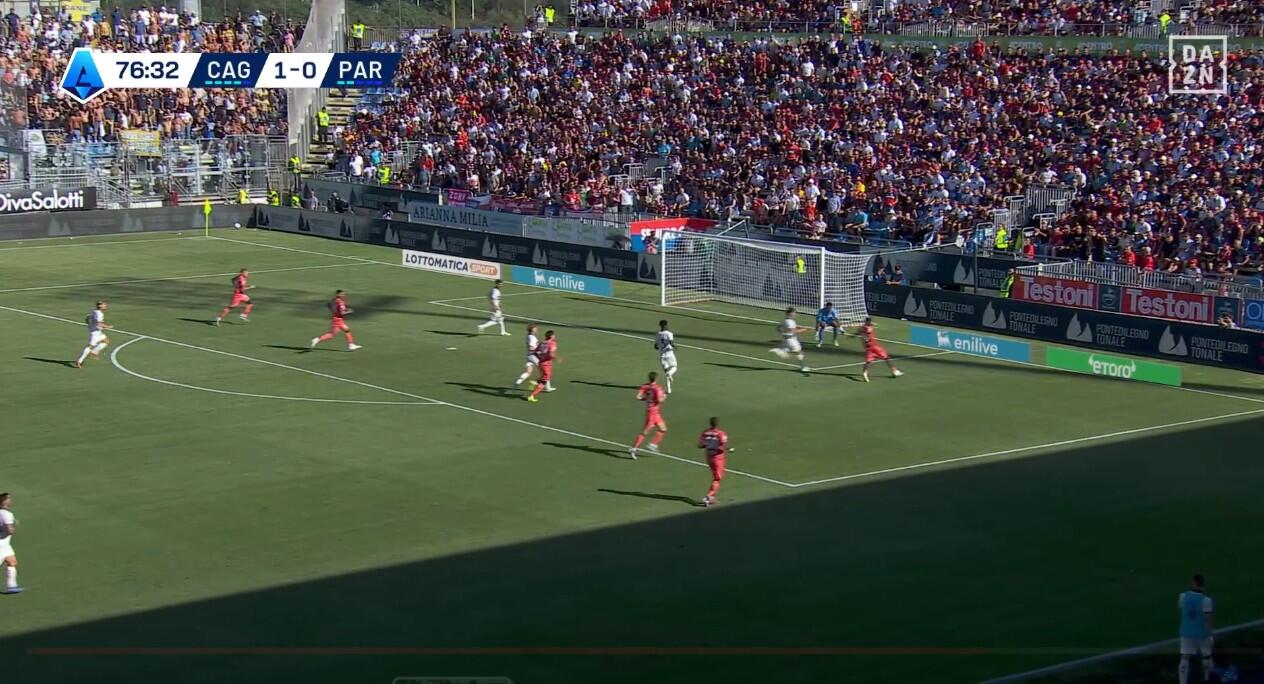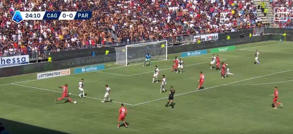 Al netto delle difficoltà e delle occasioni del Parma, il Cagliari anche in vantaggio non ha cercato la gestione, anzi. Le poche volte che c’è stata l’occasione di portare avanti transizioni positive lo ha fatto con l’appoggio e il supporto di tanti giocatori, senza limitarsi a difendere lasciando più uomini possibili in copertura.