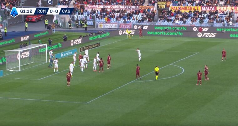 Sulla palla inattiva che porta al gol della Roma in Cagliari difende a zona con il classico castello. Un 4-4-1 più Viola staccato con l’idea di attaccare il cross senza marcature prefissate. Quando il pallone arriva in area sono Piccoli, Adopo e Mina ad andare incontro alla sfera, con il colombiano che si stacca dalla sua posizione lasciando libera la parte vicina a Caprile. L’unico che resta basso è Prati, il cui compito è quello di controllare il palo in un tiro a uscire e non a rientrare. Quando Deiola devia il pallone sono quattro i giocatori della Roma liberi, anche Obert si stacca dalla prima linea più vicina alla porta mentre restano statici i tre della seconda linea, Luperto, Deiola e Palomino. Un condensato di sfortuna, disattenzione e di “eccesso” di volontà che ha portato alla rete che ha sancito la sconfitta, ma che nasce da una mancata collaborazione nell’azione precedente e da una gestione di alcuni momenti ancora da migliorare.