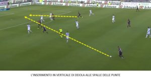 Quest’ultima situazione nasce dall’inserimento verticale delle mezzali, Barella da una parte e Deiola dall’altra, che permettono a Klavan di poter impostare cercando lo spazio alle spalle delle due torri. Troppo poco per poter pensare di recuperare lo svantaggio nonostante lo scatto d’orgoglio finale. Il gol è frutto di una giocata individuale del Pata al rientro, unica buona notizia di una partita persa prima di giocarla.