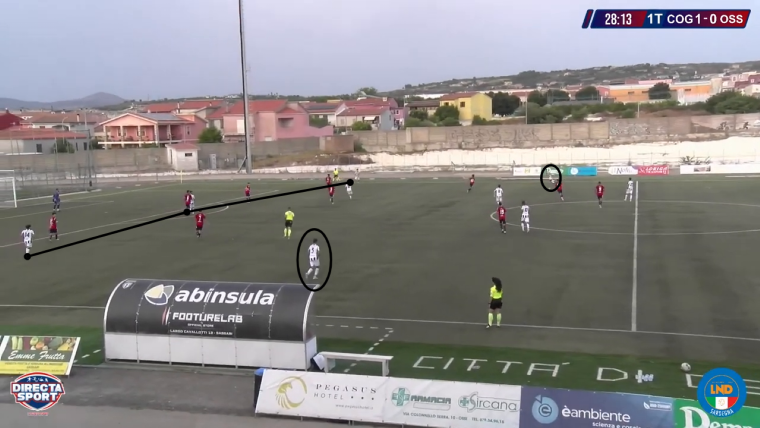 Nel corso del primo tempo l’Ossese ha via via preso campo, schiacciando il Coghinas nella propria metà campo: i terzini Arca e Sanna sono stati sempre costantemente nella metà campo avversaria, “spingendo” gli esterni ad assumere le funzioni di vere e proprie ali offensive.