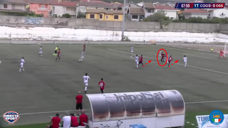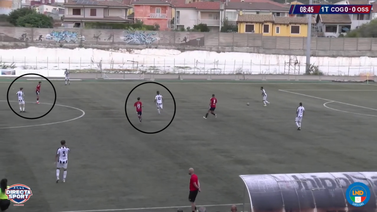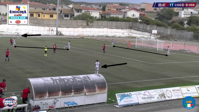 È stato il reparto che meglio ha interpretato la partita nelle due fasi: le partite spesso si vincono sia se gli attaccanti ti fanno giocare (e questo è il caso, con Tapparello sempre nel vivo del gioco) ma anche quando il centrocampo è in grado di schermare la difesa e subito dopo costruisce e rifinisce il gioco. Interscambi di posizione e occupazione degli spazi sono all’ordine del giorno in casa Ossese, ma quello che stupisce è la conoscenza delle funzioni che i singoli devono saper affrontare durante la gara: chi costruisce, chi occupa la rifinitura, come smarcarsi dall’avversario, sono tutte funzioni che Nurra, Saba e Gueli conoscono e riconoscono nel gioco. Le funzioni di base sono molto semplici: Gueli è il giocatore che si occupa di ricevere palla dalla difesa, diventando il quinto “costruttore” di gioco.