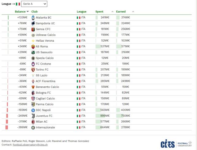 Segno meno – Bene o male, il Cagliari in questi ultimi cinque anni ha speso. Soprattutto negli ultimi due, anche per via della cessione di Barella all’Inter. Il saldo però è estremamente negativo e se fino a oggi si poteva trattare solo di una sensazione, ci ha pensato il CIES Football Observatory a certificarlo come fatto. Secondo quanto riportato dall’osservatorio, infatti, nelle ultime dieci finestre di mercato il Cagliari ha speso 158 milioni di euro, mettendone in cassa dalle cessioni 89. Un saldo negativo di 69 milioni di euro che pone la società di Via Mameli al sesto posto tra le compagini che militano nell’attuale Serie A.