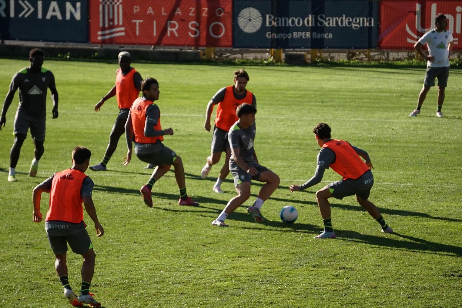 La squadra di Pisacane è scesa in campo intorno alle 17.30, dopo una lunga attivazione in palestra. Inizio di seduta con un torello divertente per i calciatori in campo e per il centinaio di tifosi presenti sugli spalti, tra cui anche una rappresentanza dei Cagliari Fan Club Pozzomaggiore e Oristano. Successivamente spazio alle prime esercitazioni tattiche: su un campo ridotto (8 contro 8 con due jolly, centrale difensivo e punta) circolazione di palla in velocità e con pochi tocchi, con focus sulla nuova costruzione dopo il recupero palla. Molto soddisfatto Pisacane per l’impegno profuso dai suoi ragazzi, anche nella partitella di chiusura seduta su un campo a 70 metri. Da una parte gli arancioni inizialmente schierati con il 3-5-2 contro un curioso 4-2-4 fluido: curiosità per alcune posizioni, con Felici ha agito al centro come sostegno di Borrelli e Vinciguerra da quarto prima e da quinto poi. Poi passaggio degli arancioni al 4-3-3 contro il 3-5-2 dei grigi. Chiusura di allenamento con partitella 9 contro 9 sui 40 metri, vinta dai grigi per 4-1. Ancora in permesso Deiola, che si riaggregherà alla squadra domani (martedì 22 luglio), solito programma in personalizzato per Pavoletti e Mina in palestra, mentre si è rivisto in gruppo Luperto. Per quanto riguarda Gaetano il fantasista partenopeo ha lavorato in campo con il preparatore Figus, alternando esercizi aerobici e con il pallone, con il bulgaro Sulev come sparring partner. In ritiro è arrivato anche il direttore generale Stefano Melis che ha seguito l’allenamento dalla panchina.