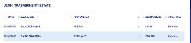 18. 28 – visite completate a Milano per Keita, tutto ok per l’ex Monaco che arriva a titolo definitivo in Sardegna. A breve l’annuncio ufficiale di una trattativa lampo ormai chiusa con esito positivo per i rossoblù.