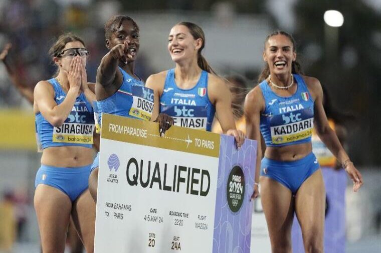 La 4×100 femminile di Dalia Kaddari stacca il pass per le Olimpiadi di Parigi. Il quartetto azzurro, impegnato nella gara di ripescaggio alle World Relays di Nassau, con un crono di 42.60 fa registrare il terzo miglior tempo italiano di sempre nella specialità e conquista un posto nell’Olimpo parigino.