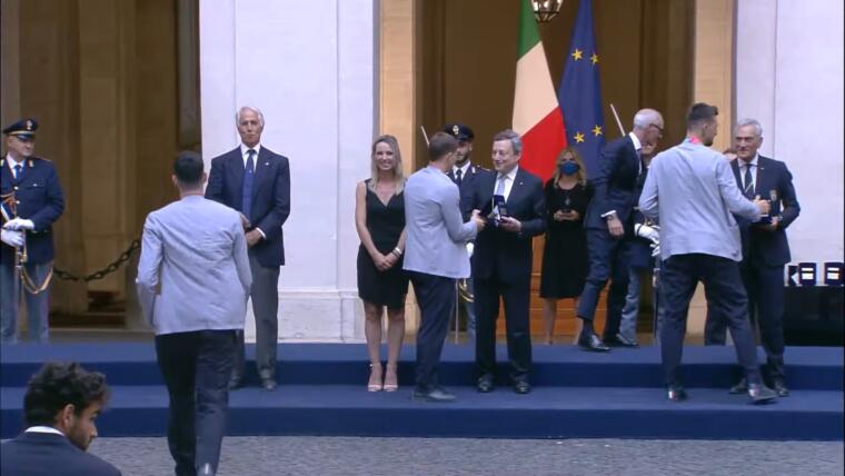 I tre atleti sono stati ricevuti dal Presidente del Consiglio Mario Draghi nella cerimonia organizzata a Palazzo Chigi per premiare la selezione azzurra di Mancini, Matteo Berrettini (reduce da uno splendido Wimbledon) e il gruppo dell’atletica che ha vinto il medagliere in Estonia con ben 6 ori e tanti altri podi. I tre sardi sono stati premiati dal premier, dal sottosegretario allo Sport, Valentina Vezzali e dal presidente del CONI Giovanni Malagò.