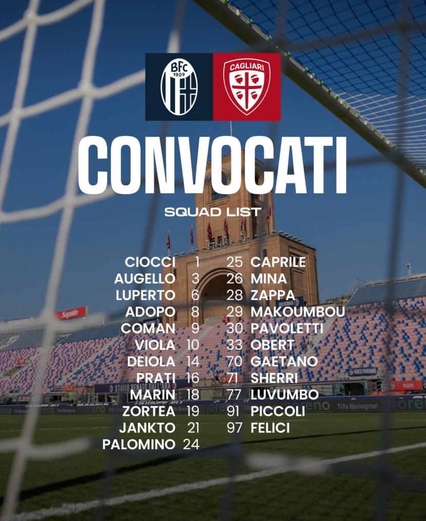 Saranno 23 i giocatori a disposizione di Davide Nicola per la sfida del Cagliari contro il Bologna in programma domenica 2 marzo alle ore 15.00 allo Stadio Dall’Ara.