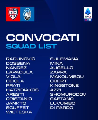 A poche ore dalla conferenza stampa di Claudio Ranieri di Asseminello (clicca qui per le dichiarazioni del tecnico), il Cagliari ha pubblicato la lista dei 23 convocati per la gara contro l’Atalanta.Â