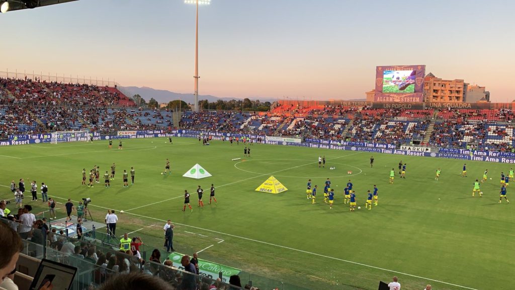 36′ – Brutto cross dalla trequarti di Ionita, con palla che finisce in curva Sud: solo applausi per il moldavo, dai compagni di squadra e, soprattutto, dalla Sardegna Arena.